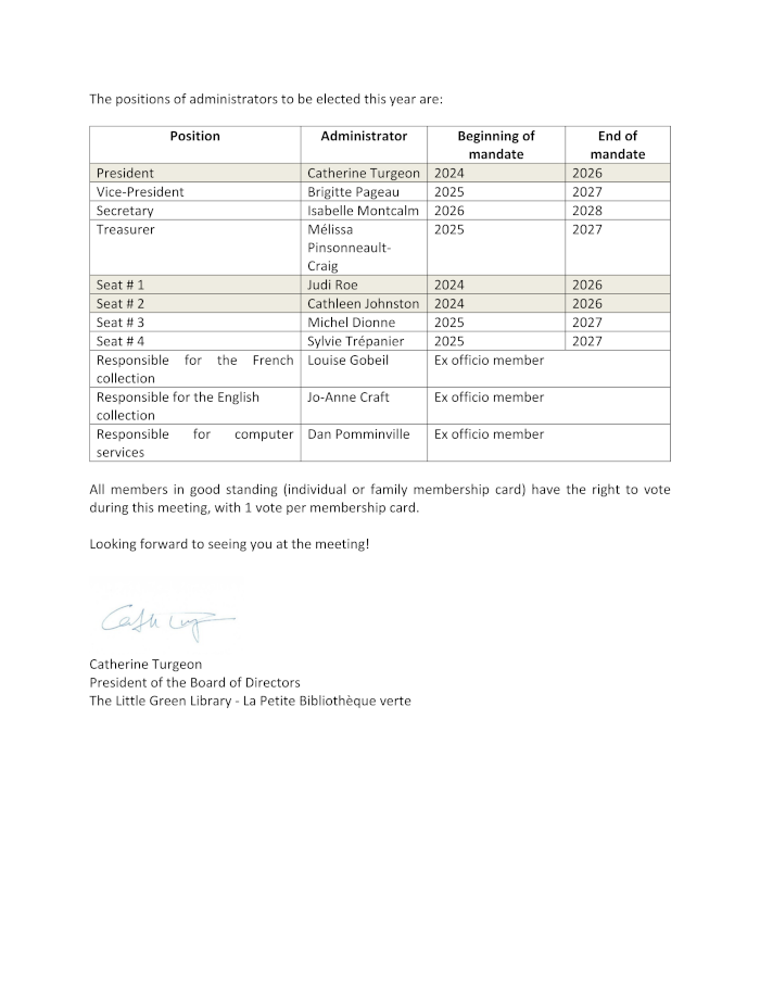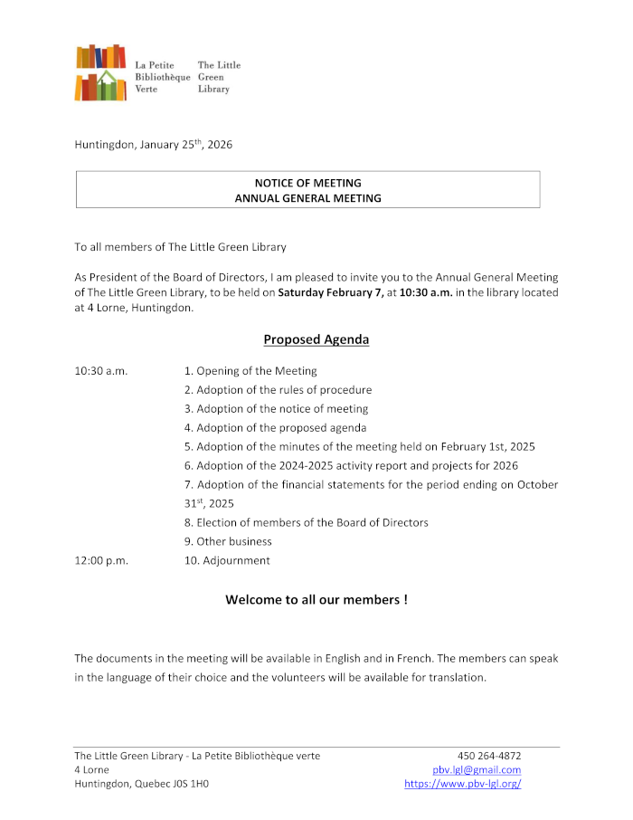 Annueal General Meeting 2026, Saturday February 7th at 10:30 am.